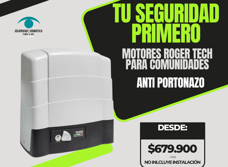Motores Roger Tech, uso condominio y residencial, de alta velocidad. (Incluye 3 metros de cremallera y 2 controles)