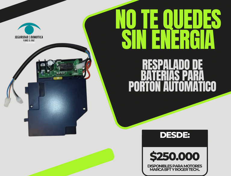 Baterias para motores de corredera y batiente, en caso de cortes del suministro de energía.